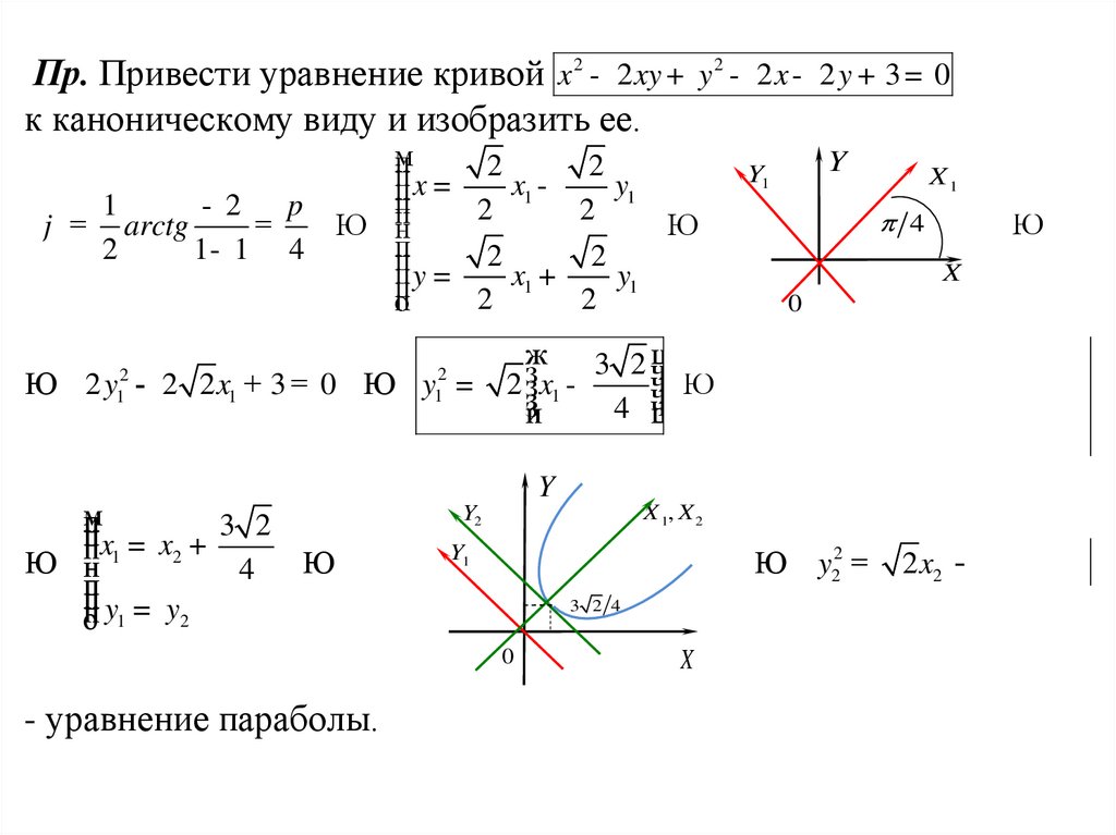 Пр. Привести уравнение кривой x 2 - 2 xy + y 2 - 2 x - 2 y + 3 = 0к каноническому виду и изобразить ее.