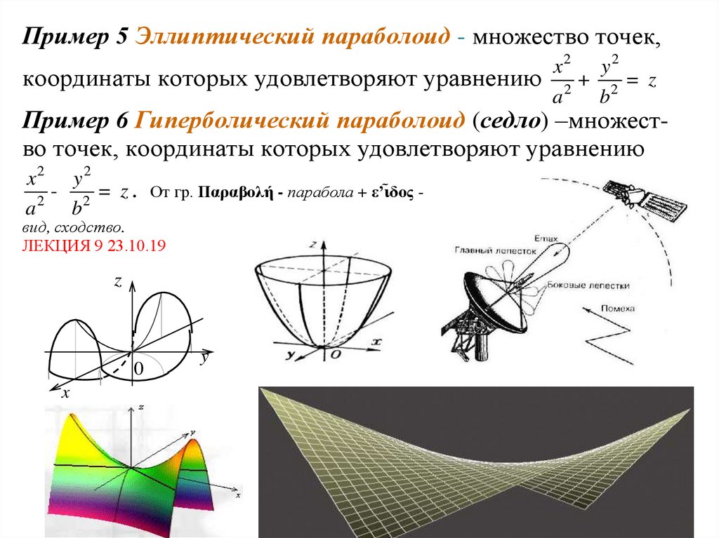 Пример 6 Гиперболический параболоид (седло) –множество точек, координаты которых удовлетворяют уравнению