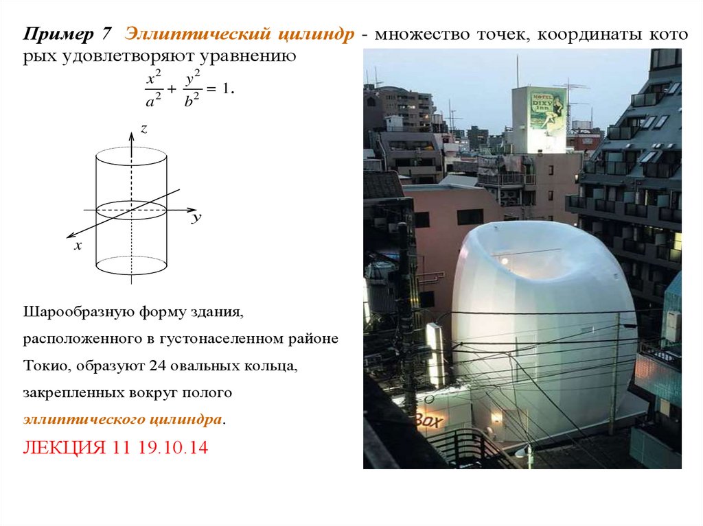 Пример 7 Эллиптический цилиндр - множество точек, координаты которых удовлетворяют уравнению