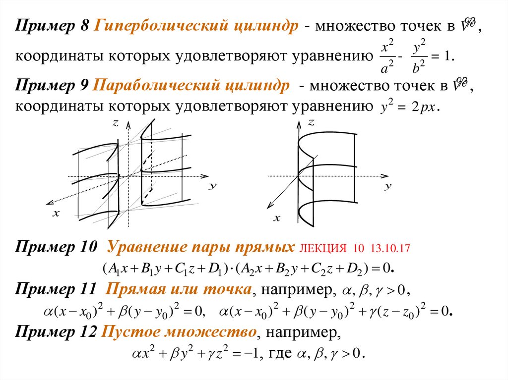 Пример 9 Параболический цилиндр - множество точек в V%3 ,