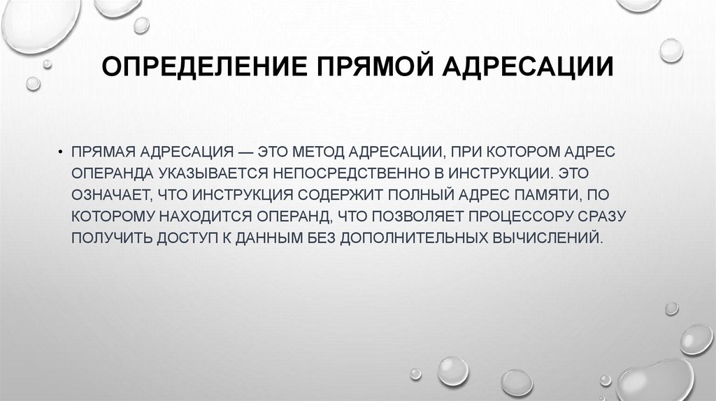 ОПРЕДЕЛЕНИЕ ПРЯМОЙ АДРЕСАЦИИ• ПРЯМАЯ АДРЕСАЦИЯ — ЭТО МЕТОД АДРЕСАЦИИ, ПРИ КОТОРОМ АДРЕС