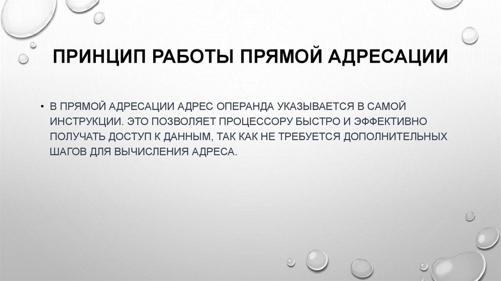 ПРИНЦИП РАБОТЫ ПРЯМОЙ АДРЕСАЦИИ• В ПРЯМОЙ АДРЕСАЦИИ АДРЕС ОПЕРАНДА УКАЗЫВАЕТСЯ В САМОЙ