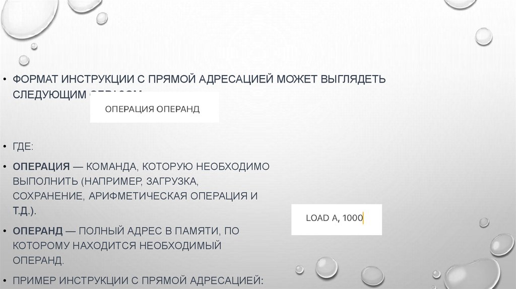 • ФОРМАТ ИНСТРУКЦИИ С ПРЯМОЙ АДРЕСАЦИЕЙ МОЖЕТ ВЫГЛЯДЕТЬСЛЕДУЮЩИМ ОБРАЗОМ: