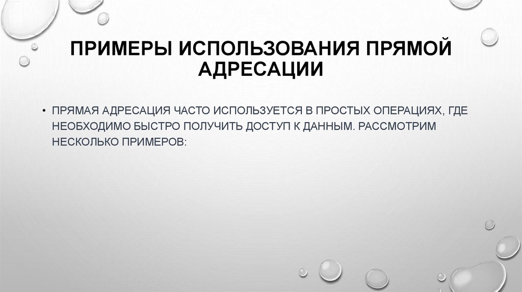 ПРИМЕРЫ ИСПОЛЬЗОВАНИЯ ПРЯМОЙАДРЕСАЦИИ