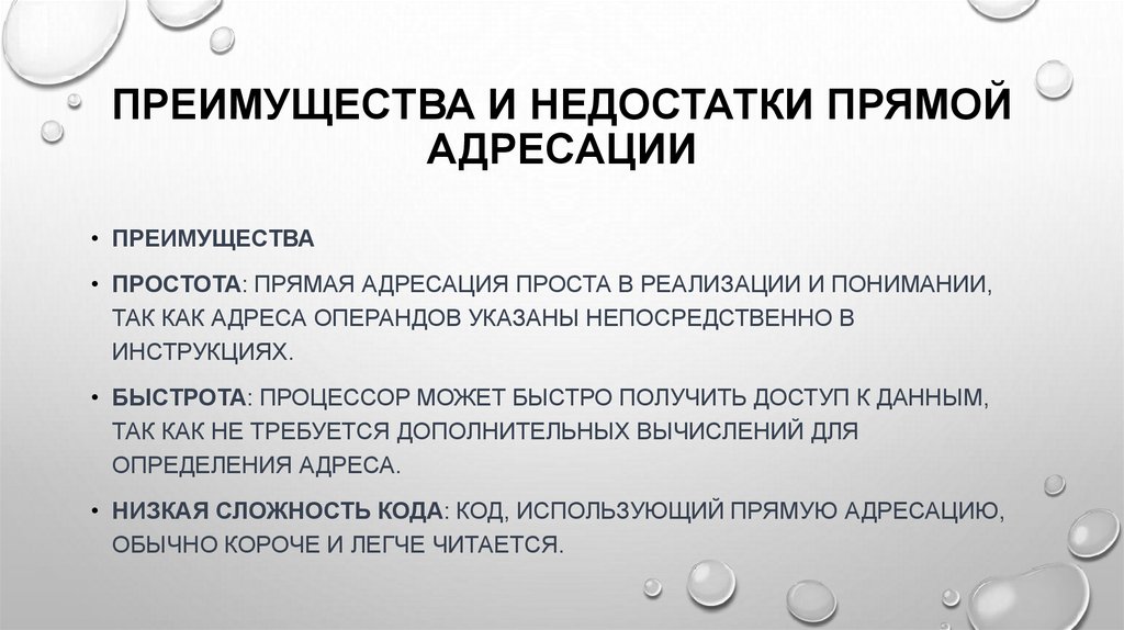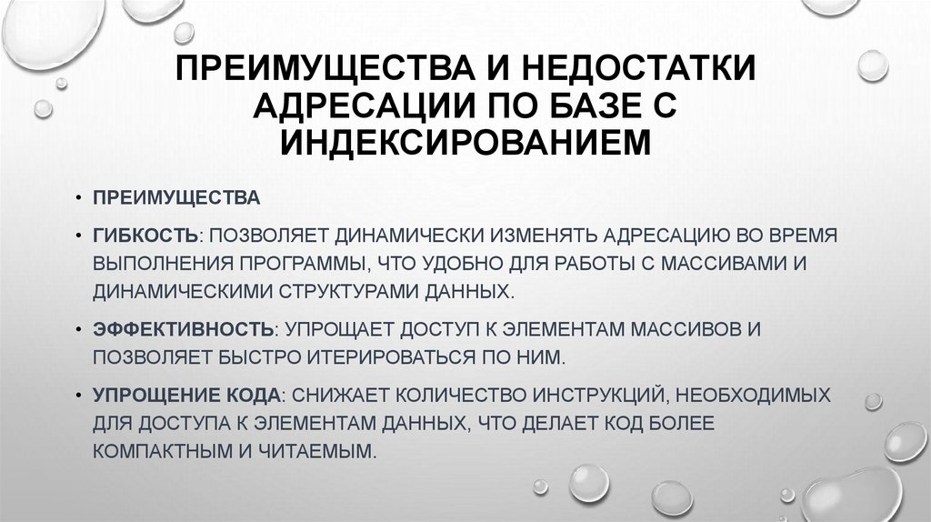 ПРЕИМУЩЕСТВА И НЕДОСТАТКИАДРЕСАЦИИ ПО БАЗЕ С