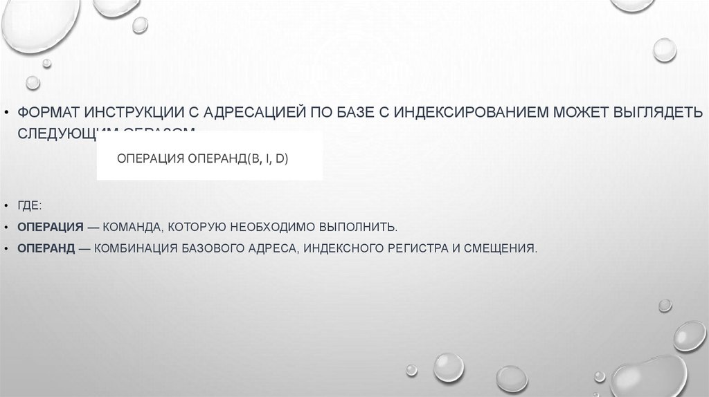• ФОРМАТ ИНСТРУКЦИИ С АДРЕСАЦИЕЙ ПО БАЗЕ С ИНДЕКСИРОВАНИЕМ МОЖЕТ ВЫГЛЯДЕТЬСЛЕДУЮЩИМ ОБРАЗОМ: