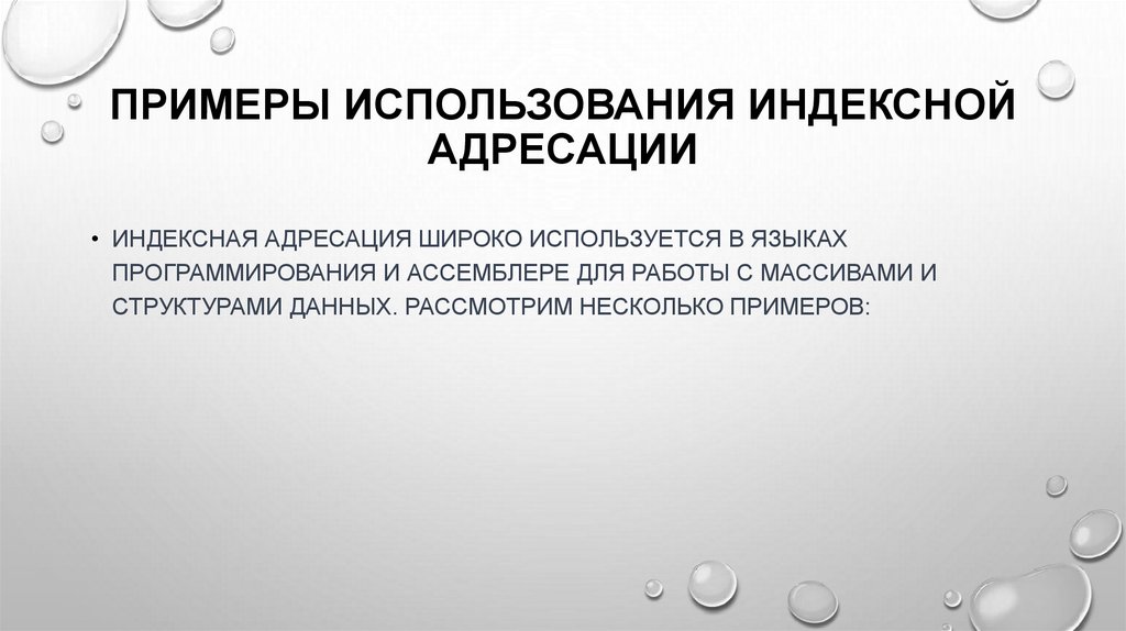 ПРИМЕРЫ ИСПОЛЬЗОВАНИЯ ИНДЕКСНОЙАДРЕСАЦИИ