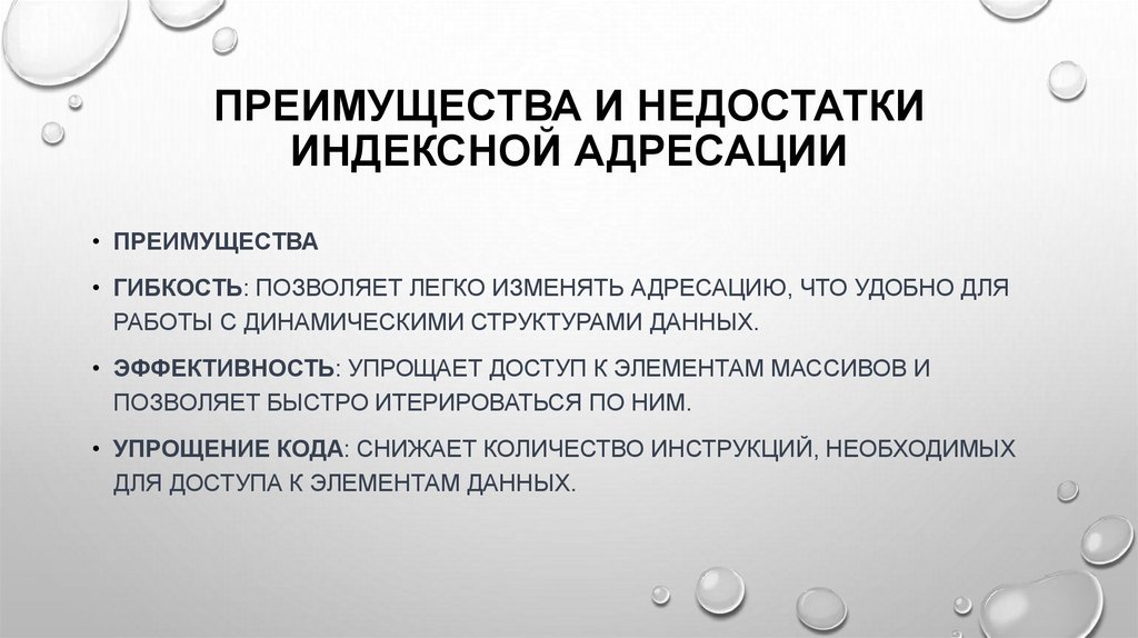 ПРЕИМУЩЕСТВА И НЕДОСТАТКИИНДЕКСНОЙ АДРЕСАЦИИ