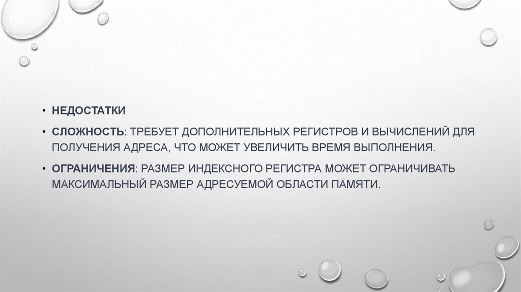 • НЕДОСТАТКИ• СЛОЖНОСТЬ: ТРЕБУЕТ ДОПОЛНИТЕЛЬНЫХ РЕГИСТРОВ И ВЫЧИСЛЕНИЙ ДЛЯ