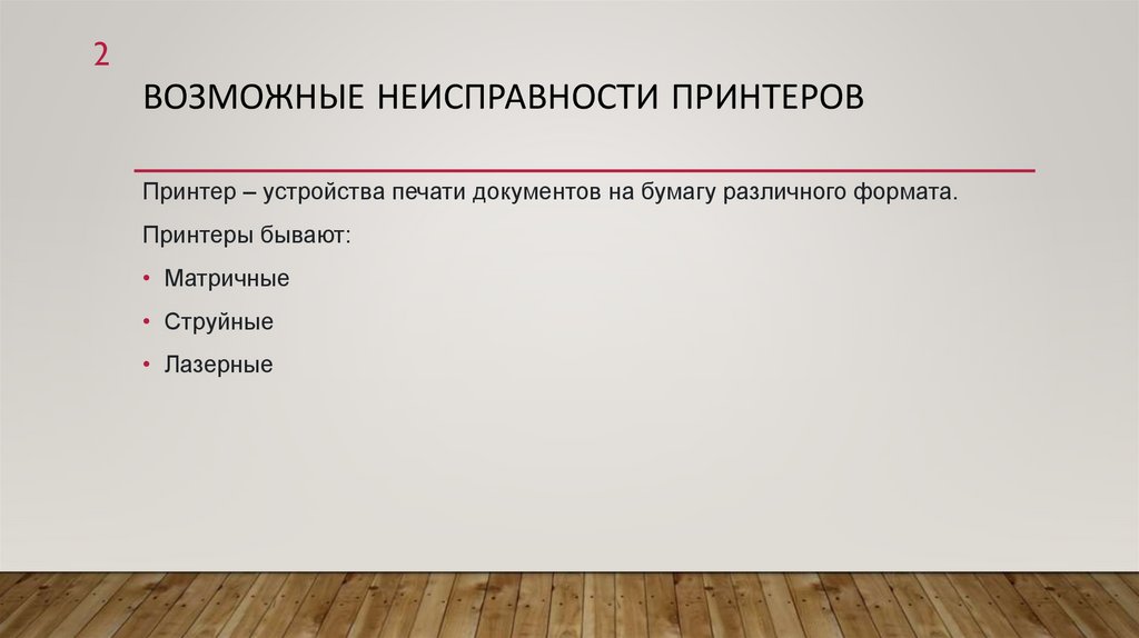 2ВОЗМОЖНЫЕ НЕИСПРАВНОСТИ ПРИНТЕРОВ