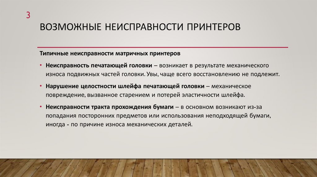 3ВОЗМОЖНЫЕ НЕИСПРАВНОСТИ ПРИНТЕРОВ