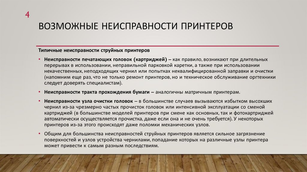 4ВОЗМОЖНЫЕ НЕИСПРАВНОСТИ ПРИНТЕРОВ