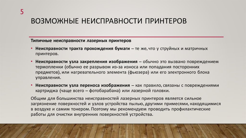 5ВОЗМОЖНЫЕ НЕИСПРАВНОСТИ ПРИНТЕРОВ