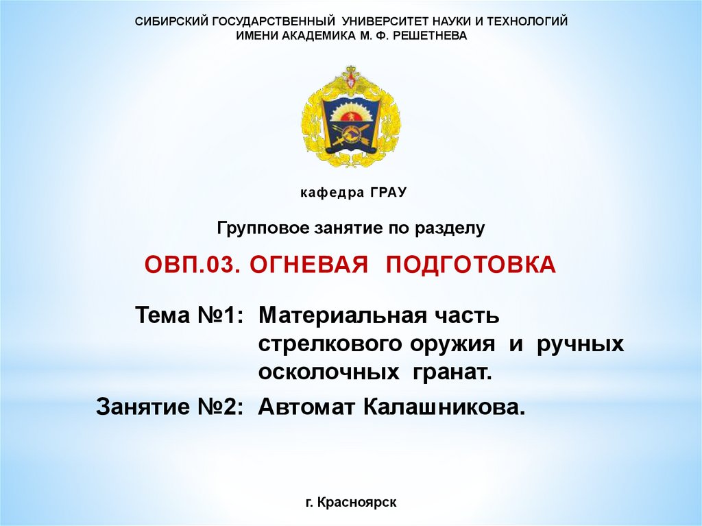 СИБИРСКИЙ ГОСУДАРСТВЕННЫЙ УНИВЕРСИТЕТ НАУКИ И ТЕХНОЛОГИЙИМЕНИ АКАДЕМИКА М. Ф. РЕШЕТНЕВА