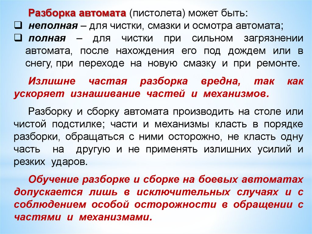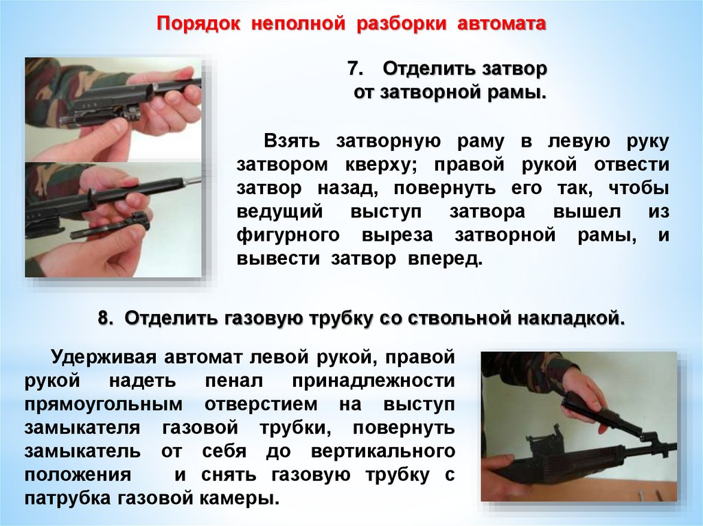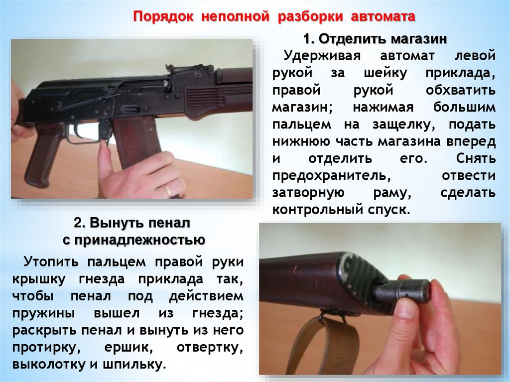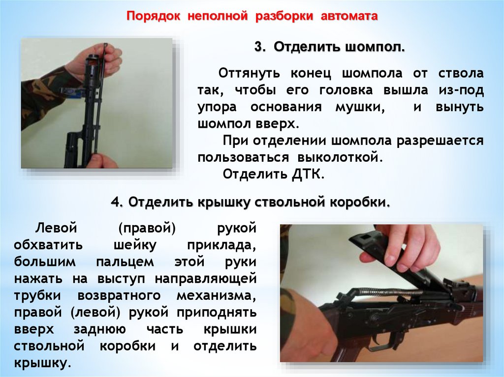 Порядок неполной разборки автомата3. Отделить шомпол.