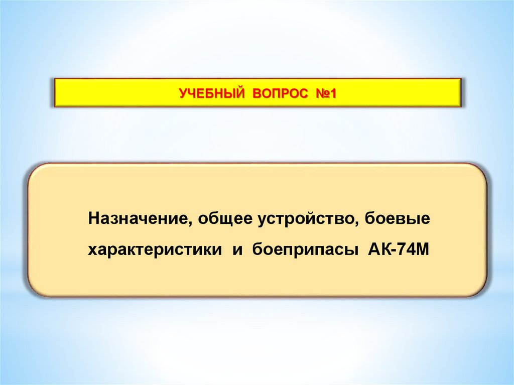 УЧЕБНЫЙ ВОПРОС №1Назначение, общее устройство, боевые