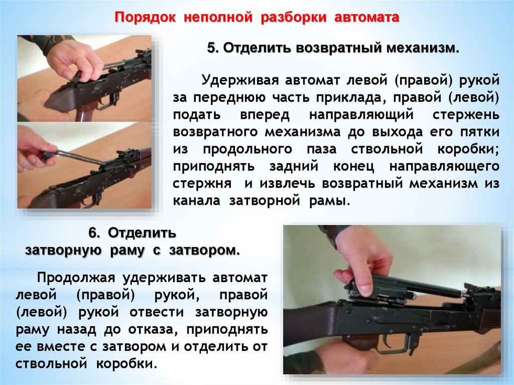 Порядок неполной разборки автомата5. Отделить возвратный механизм.