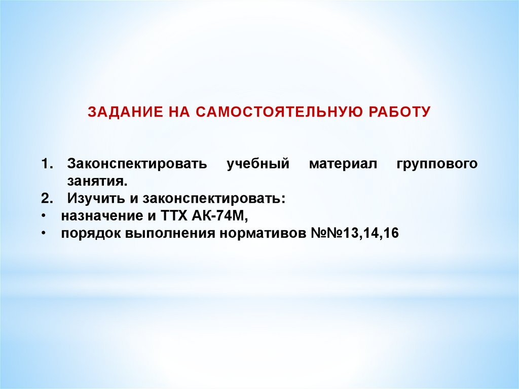 ЗАДАНИЕ НА САМОСТОЯТЕЛЬНУЮ РАБОТУ1. Законспектировать учебный материал группового