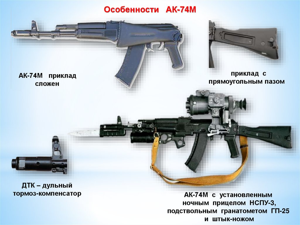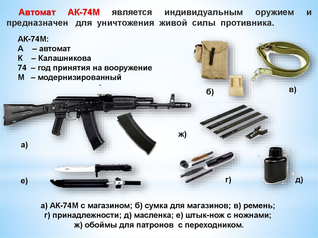 Автомат АК-74М является индивидуальным оружиемпредназначен для уничтожения живой силы противника.