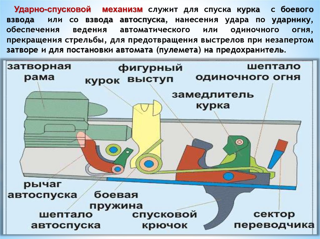 Ударно-спусковой механизм служит для спуска курка с боевоговзвода