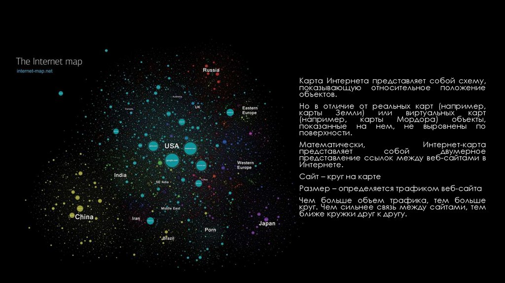 Карта Интернета представляет собой схему,показывающую относительное положение