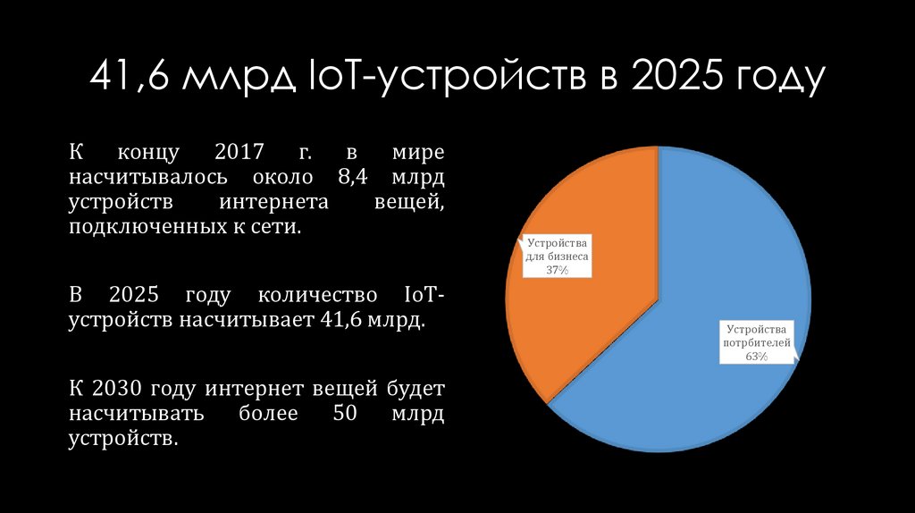 В 2025 году количество IoTустройств насчитывает 41,6 млрд.