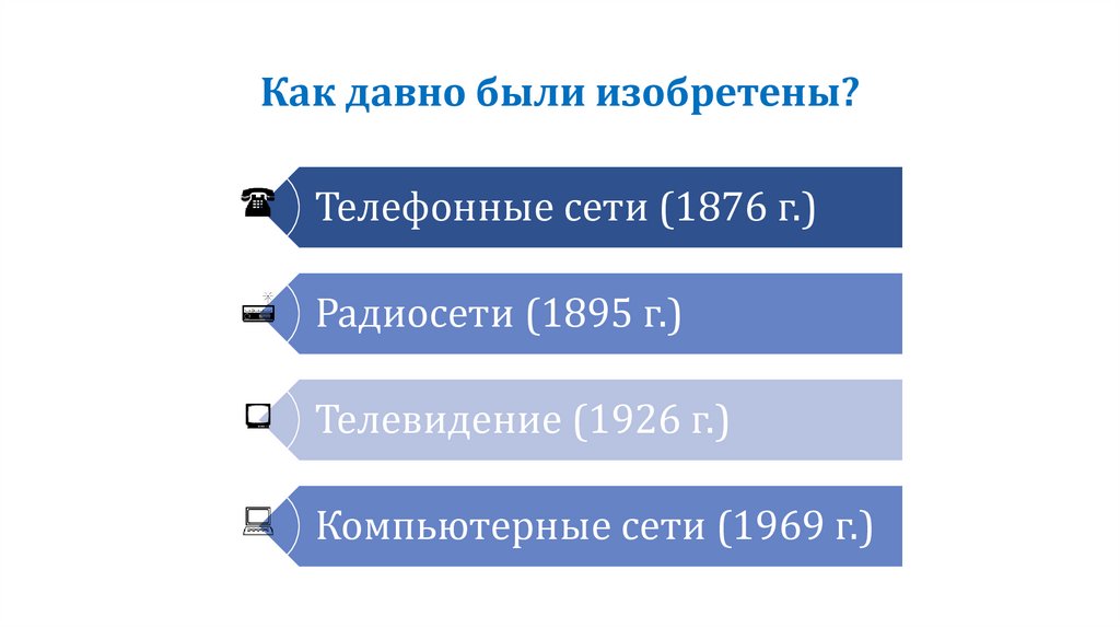 Телефонные сети (1876 г.)Радиосети (1895 г.)