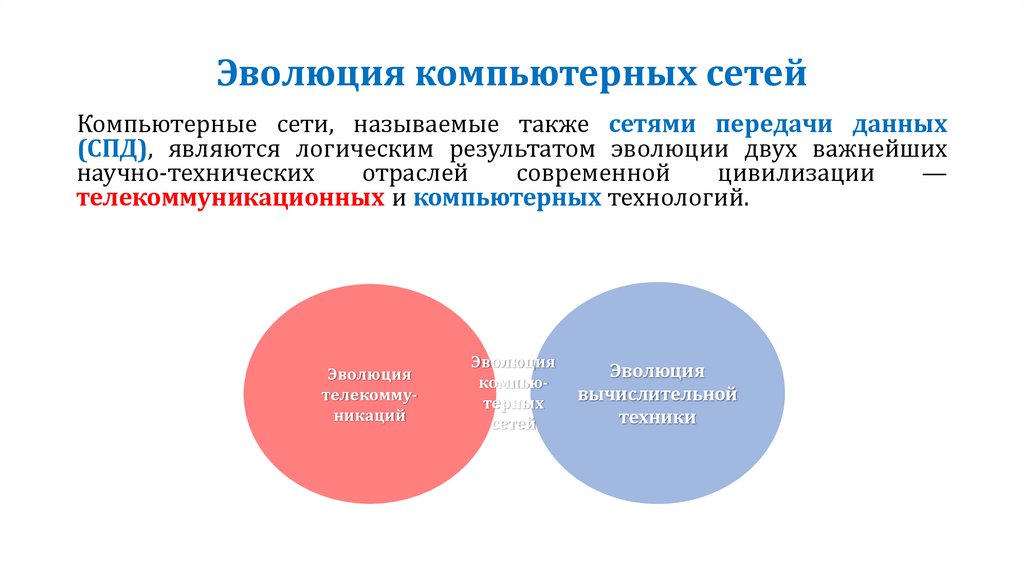 Компьютерные сети, называемые также сетями передачи данных(СПД), являются логическим результатом эволюции двух важнейших