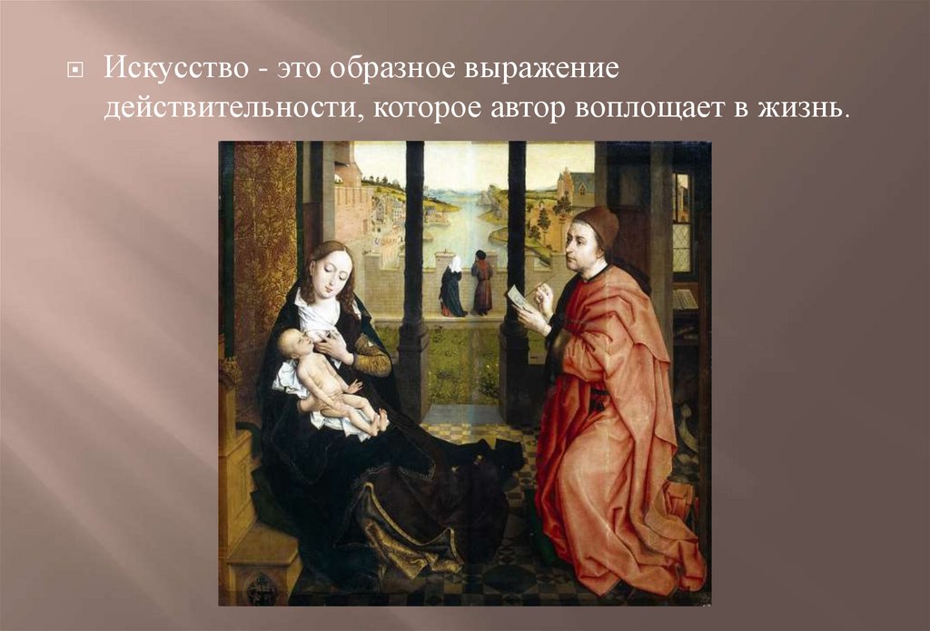 Искусство - это образное выражениедействительности, которое автор воплощает в жизнь.