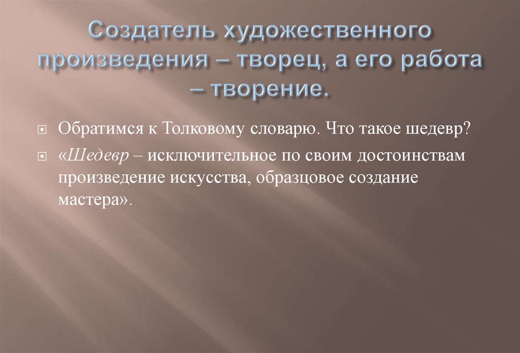 Обратимся к Толковому словарю. Что такое шедевр?«Шедевр – исключительное по своим достоинствам