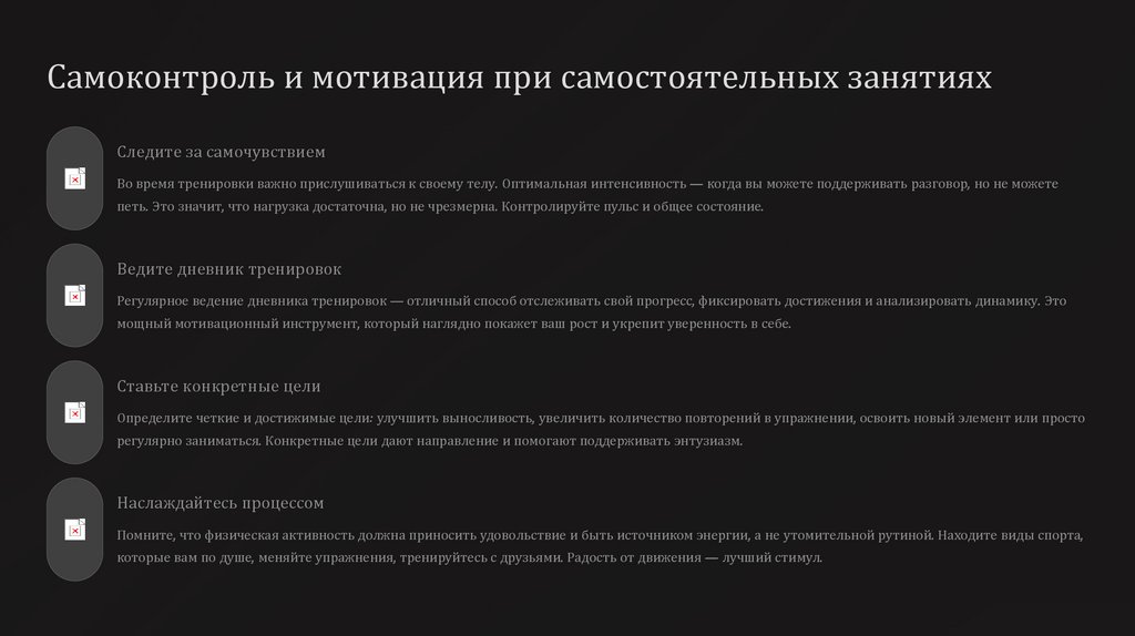 Самоконтроль и мотивация при самостоятельных занятияхСледите за самочувствием