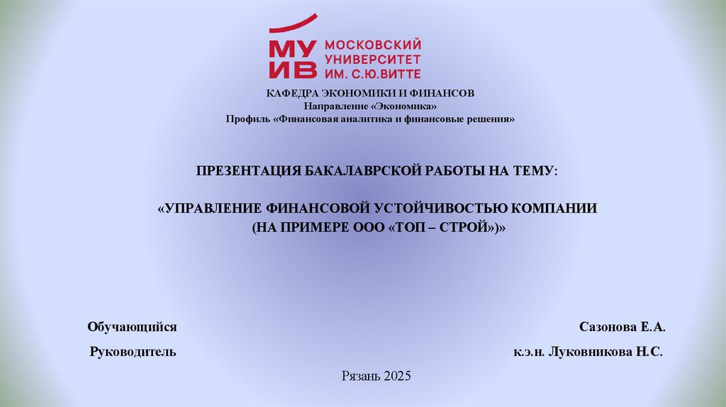 «УПРАВЛЕНИЕ ФИНАНСОВОЙ УСТОЙЧИВОСТЬЮ КОМПАНИИ