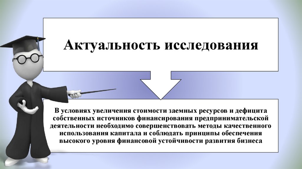 Актуальность исследованияВ условиях увеличения стоимости заемных ресурсов и дефицита
