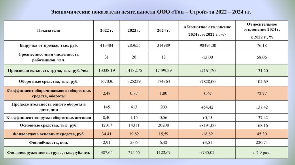 проведен анализ финансово-хозяйственной деятельности компании ООО «Топ-Строй»;