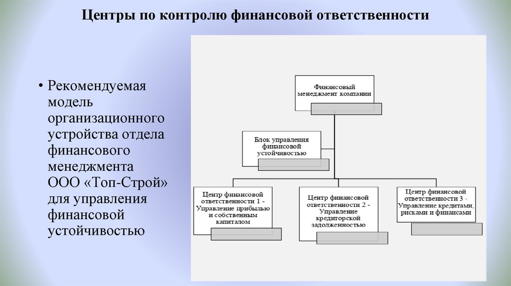 Центры по контролю финансовой ответственности• Рекомендуемая