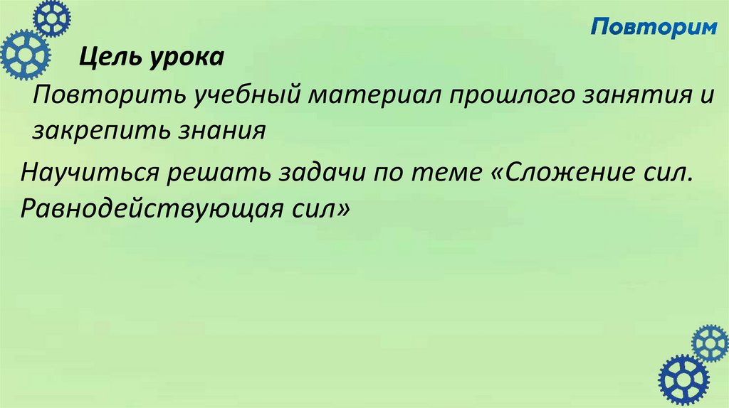 Научиться решать задачи по теме «Сложение сил.