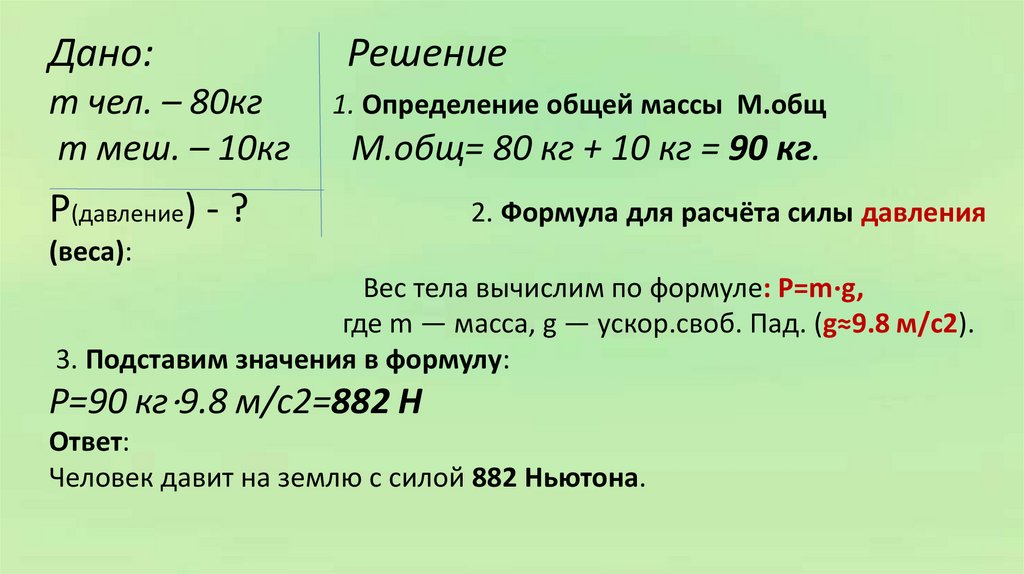 2. Формула для расчёта силы давления