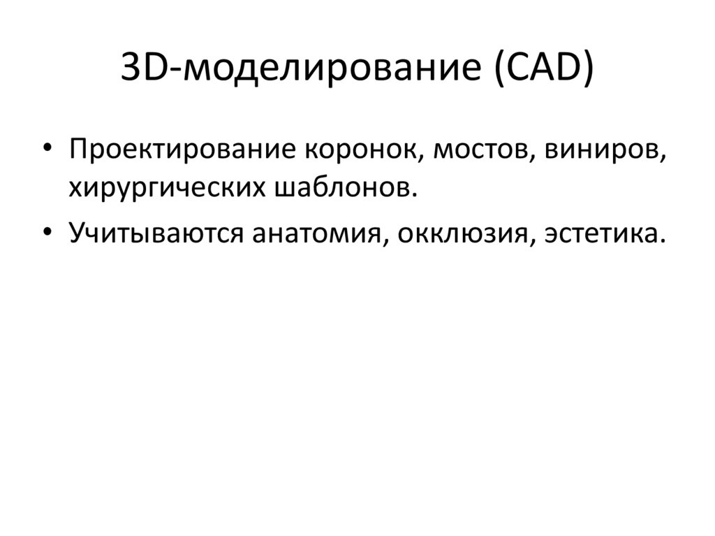 3D-моделирование (CAD)• Проектирование коронок, мостов, виниров,