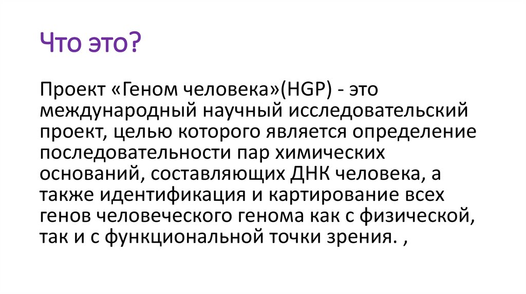 Проект «Геном человека»(HGP) - этомеждународный научный исследовательский