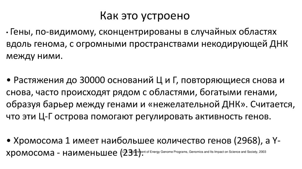 Как это устроено• Гены, по-видимому, сконцентрированы в случайных областях