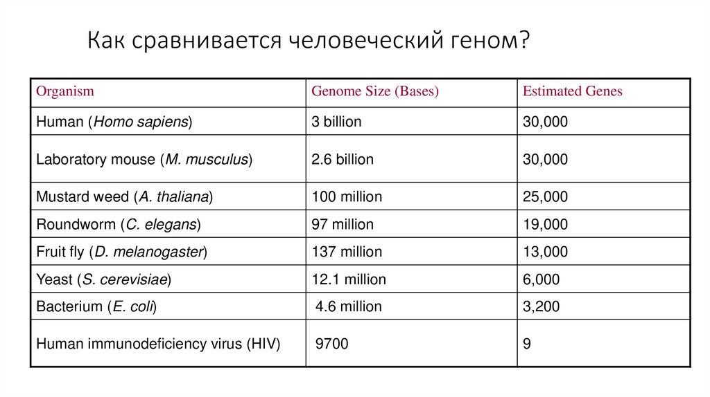 8. Как сравнивается человеческий геном?