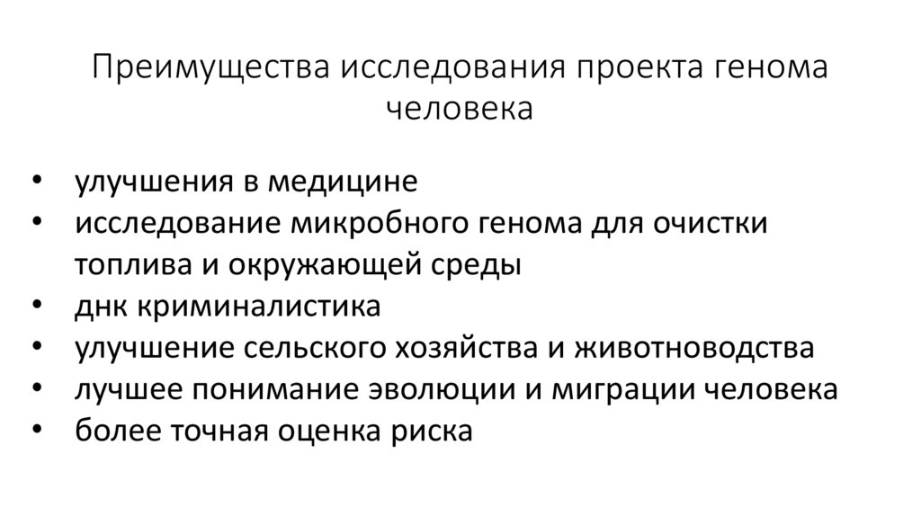 9. Преимущества исследования проекта генома человека