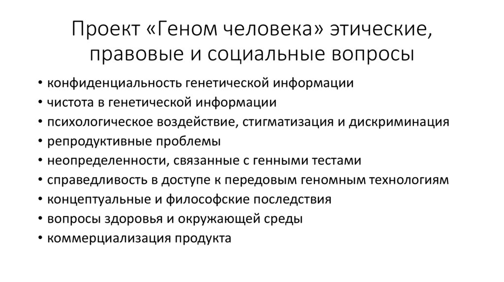 10. Проект «Геном человека» этические, правовые и социальные вопросы