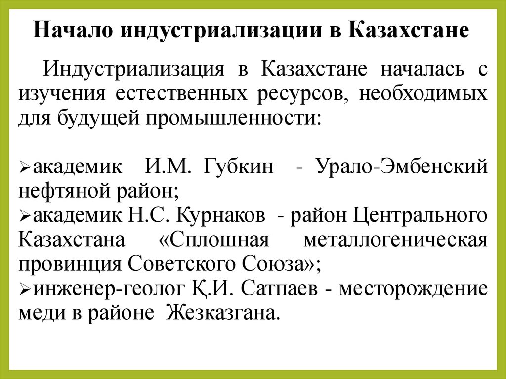 Индустриализация в Казахстане началась сизучения естественных ресурсов, необходимых