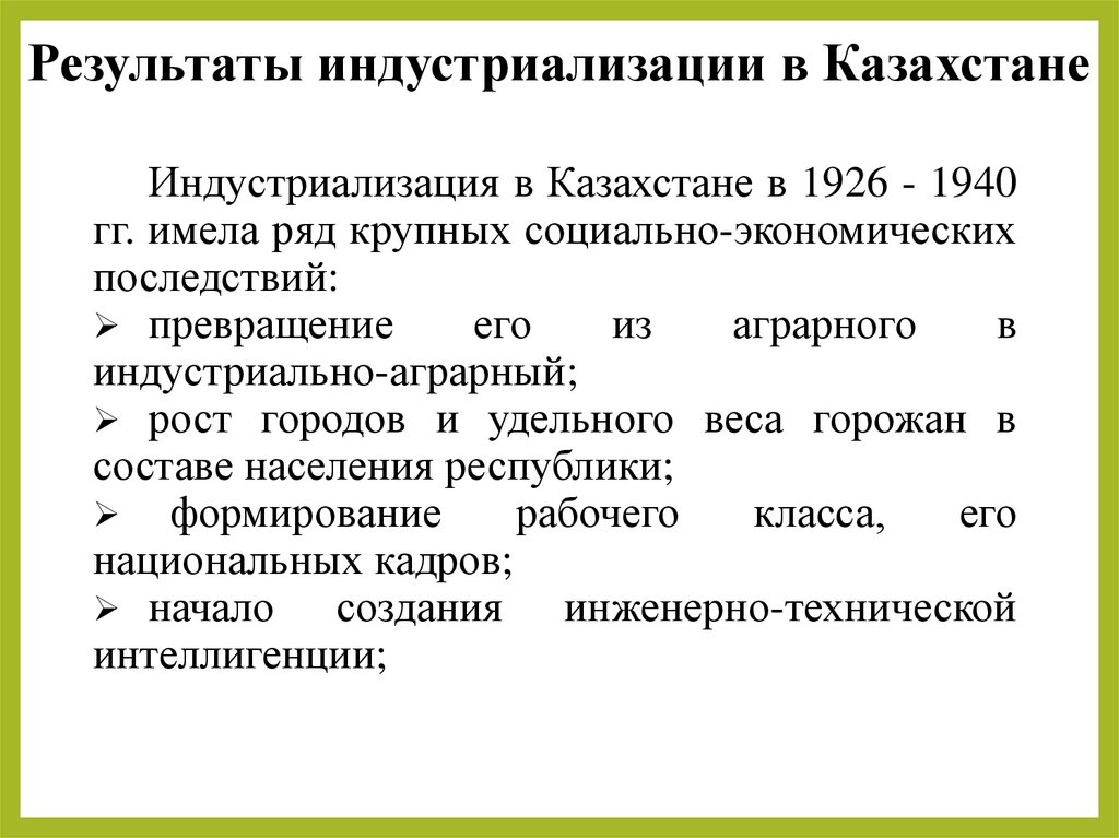 Индустриализация в Казахстане в 1926 - 1940гг. имела ряд крупных социально-экономических
