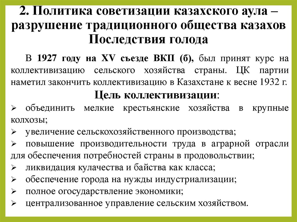 1. Определите цель и методы проведенияиндустриализации в Казахстане;
