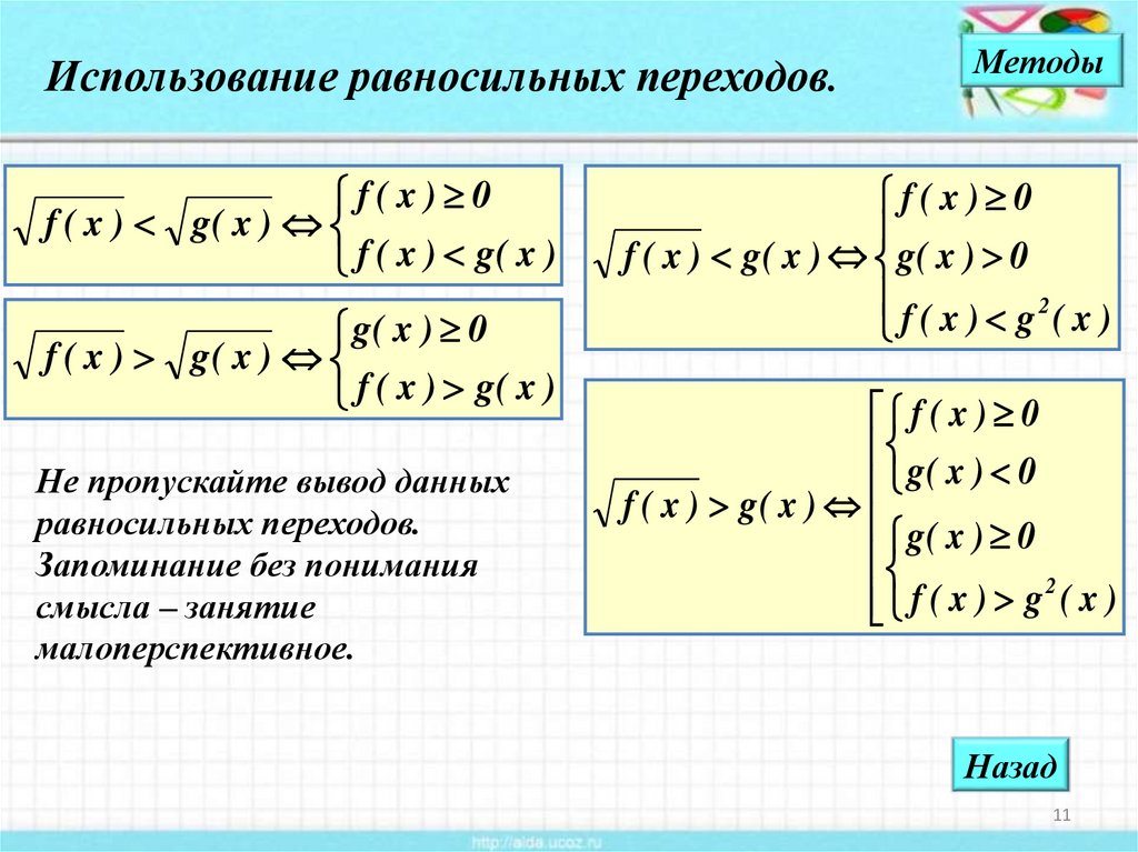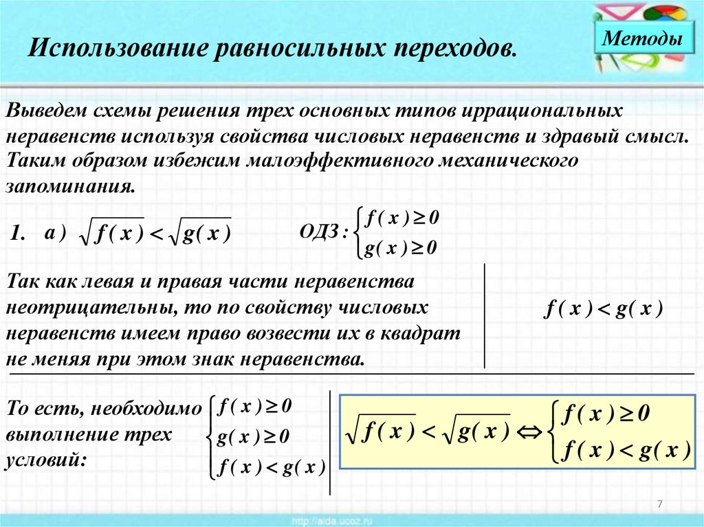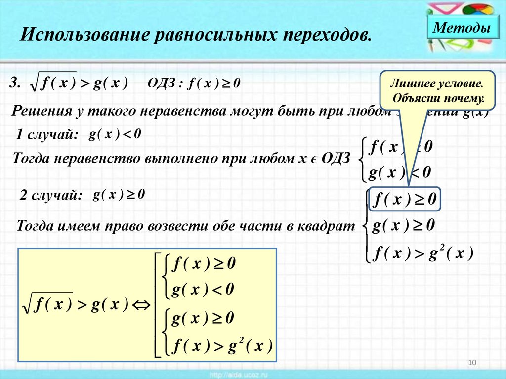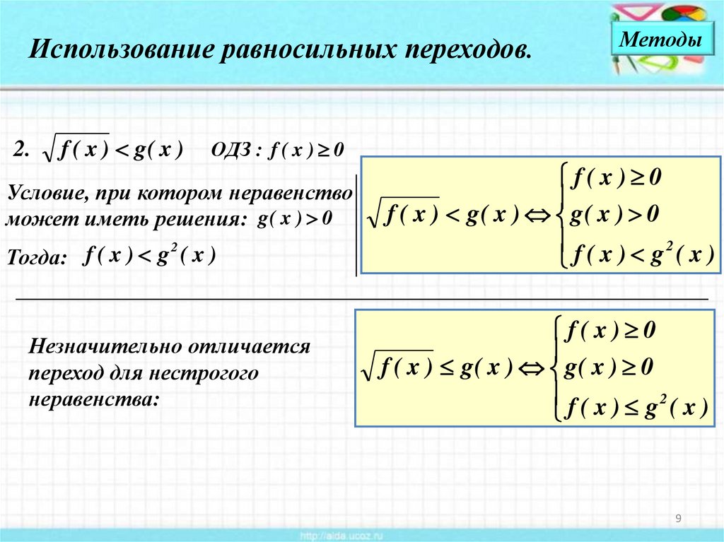 Презентация _ Методы решения иррациональных неравенств_ (10-11 класс) (2)