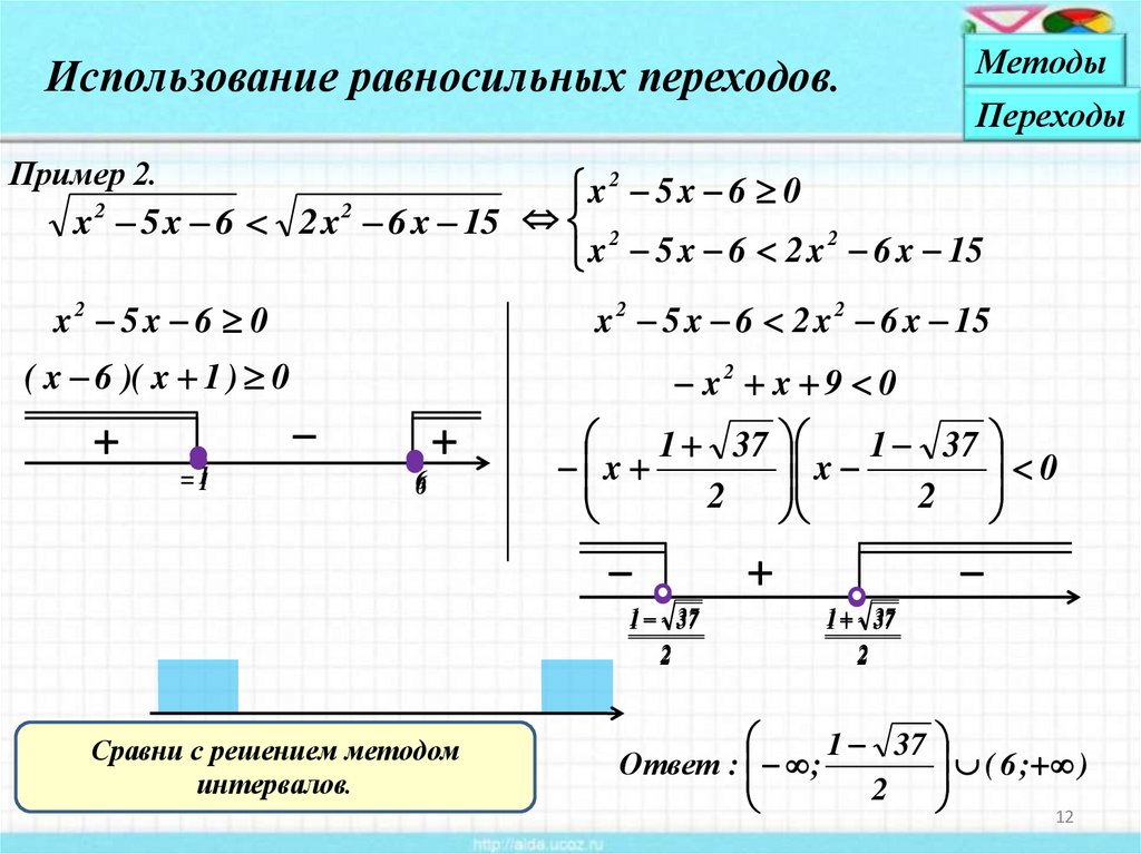 схем: нужно решать не три неравенства (метод интервалов), а два.