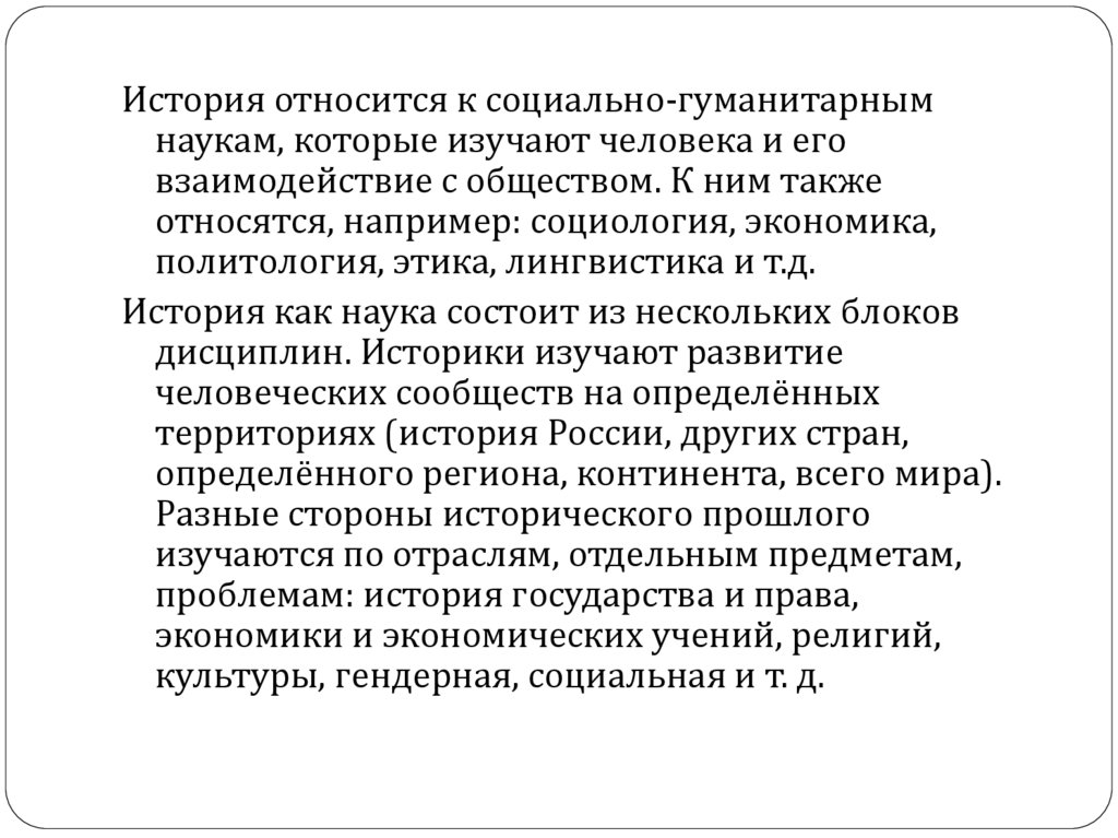 История относится к социально-гуманитарнымнаукам, которые изучают человека и его