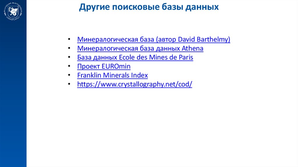 Другие поисковые базы данныхМинералогическая база (автор David Barthelmy)